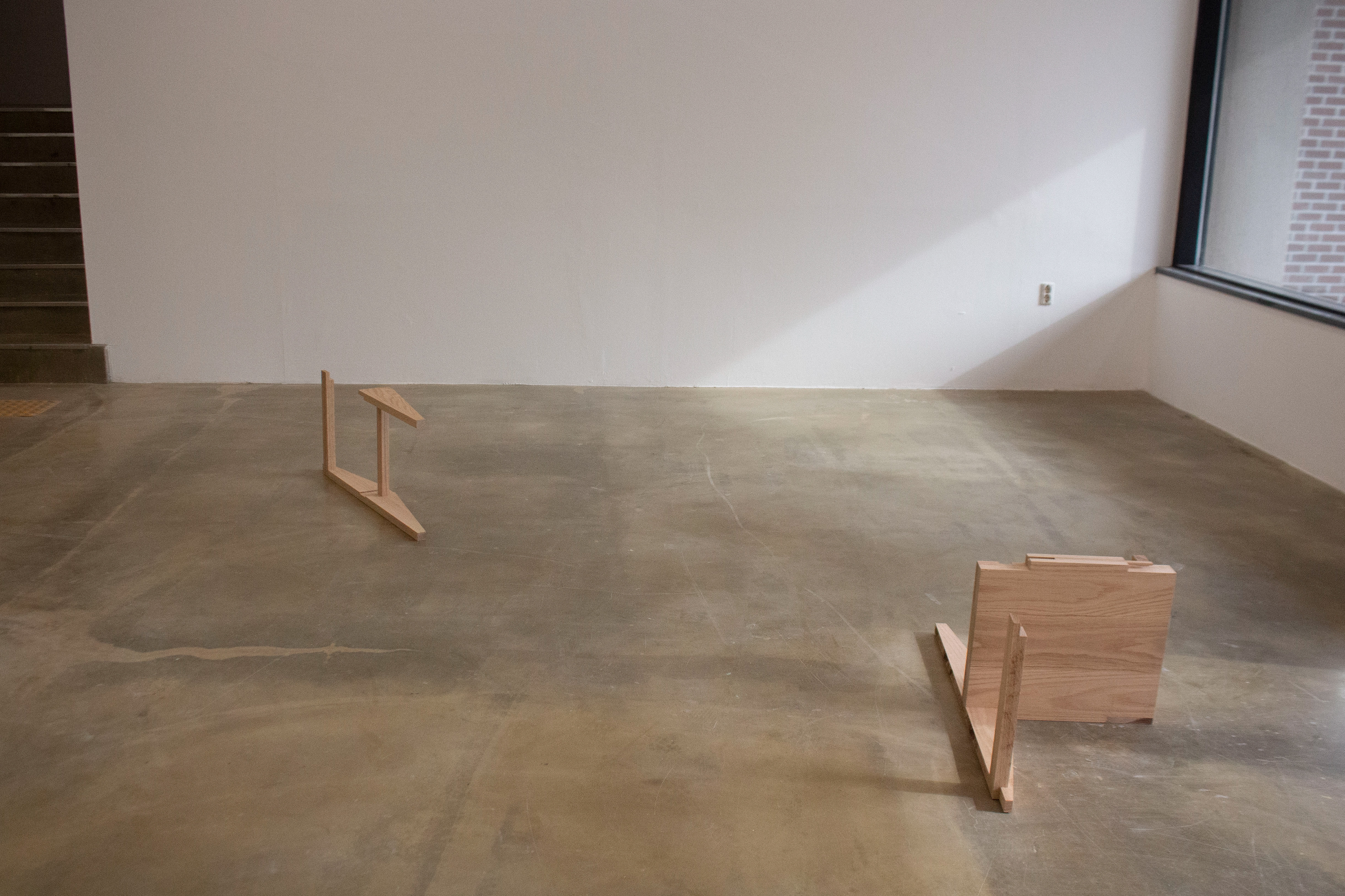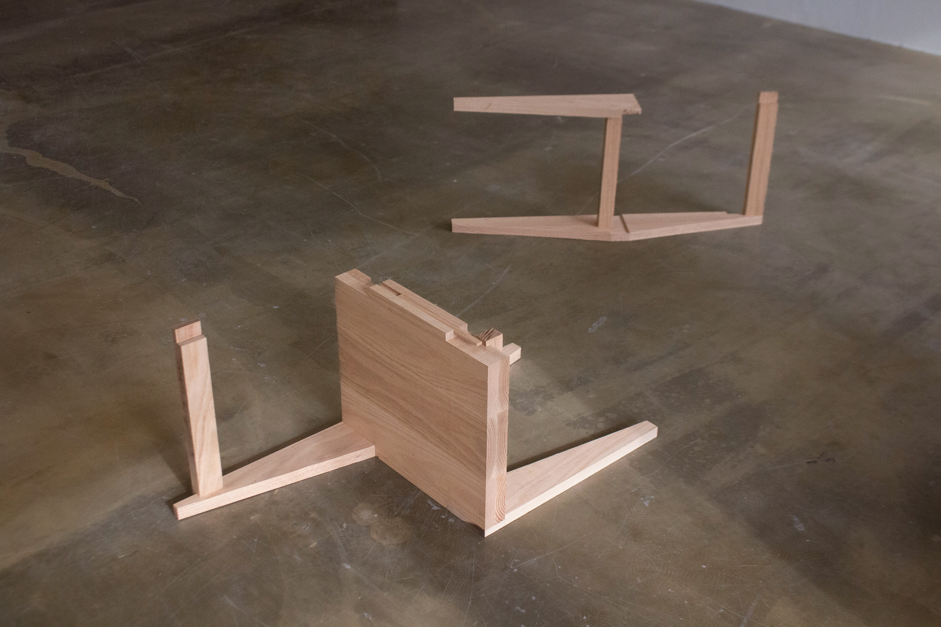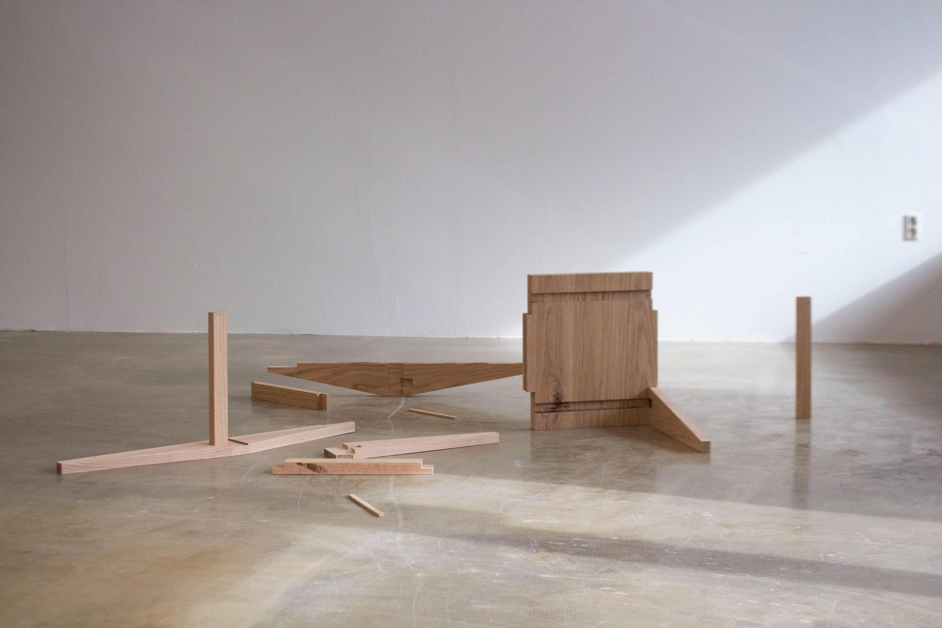 The work explores the question of practical function and usability through sculptural forms inspired by furniture.