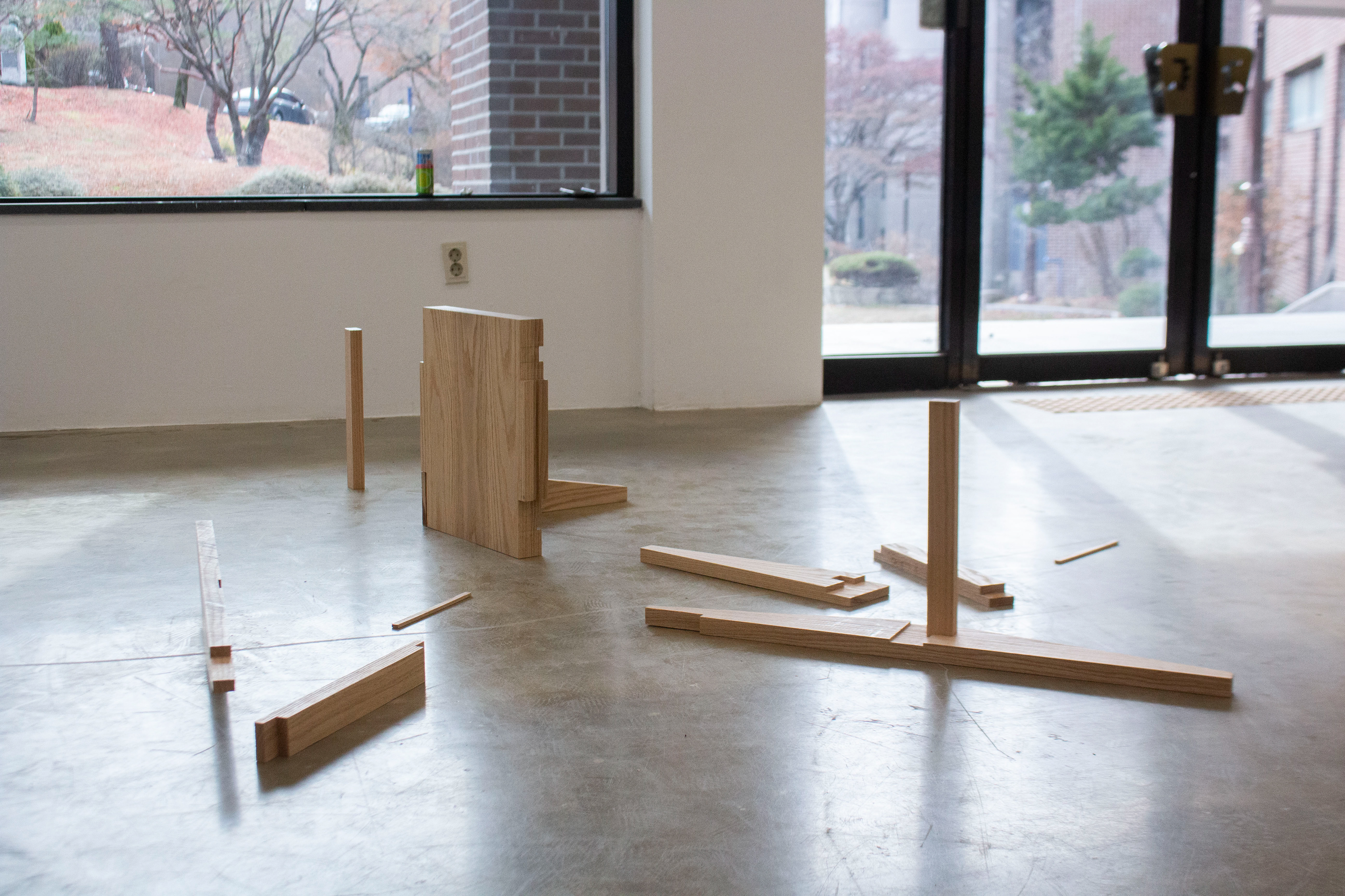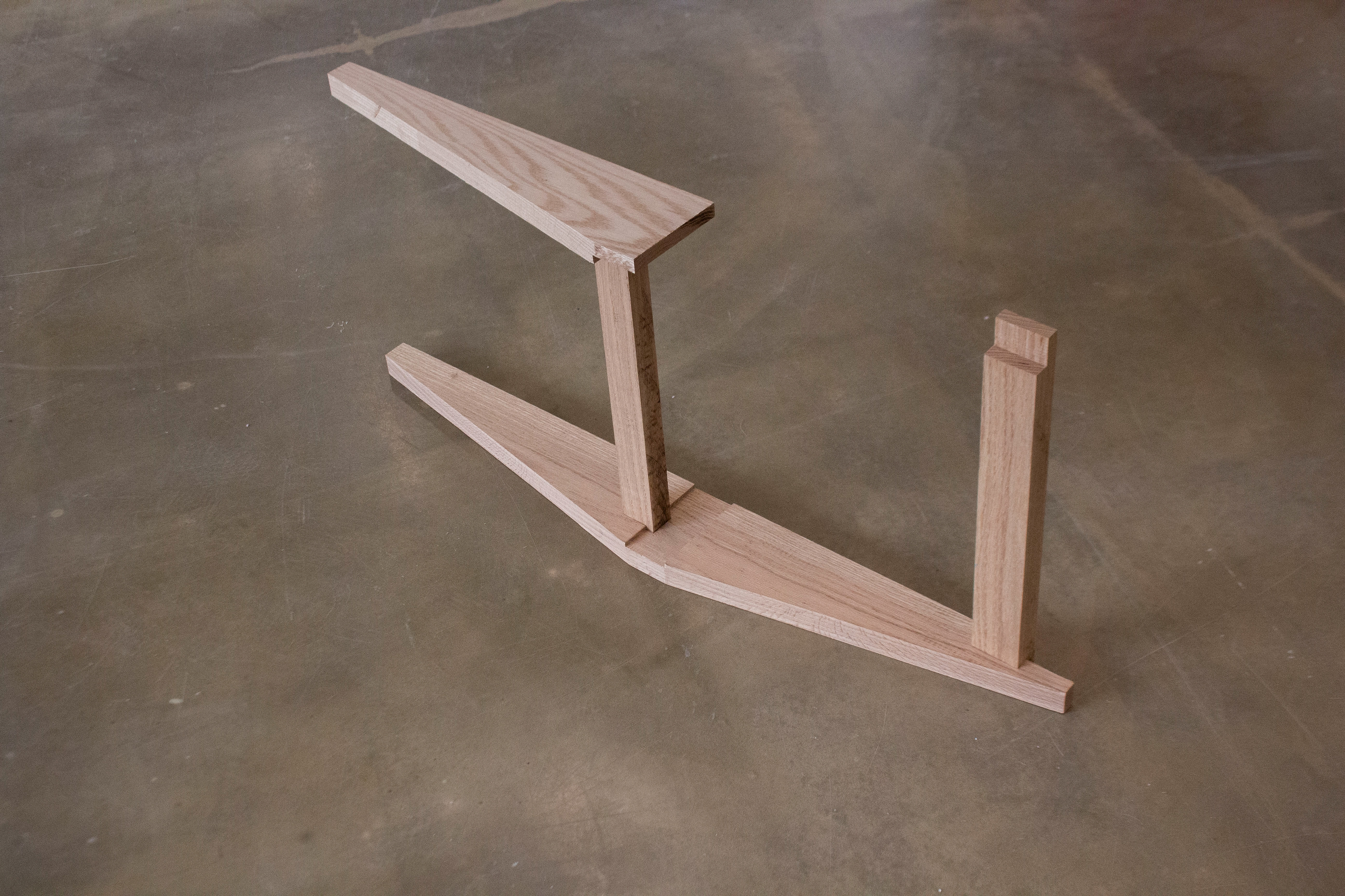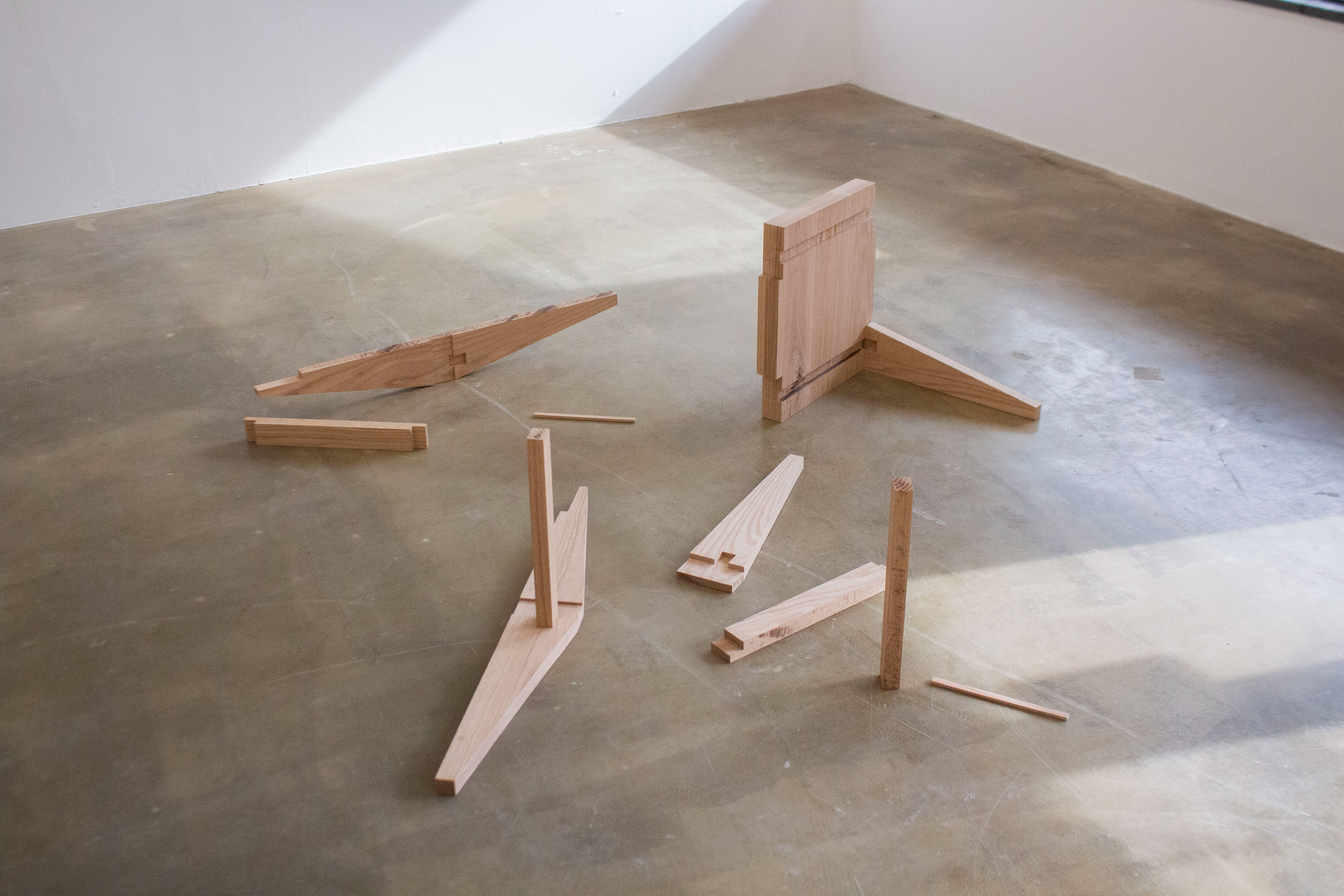 The work explores the question of practical function and usability through sculptural forms inspired by furniture.