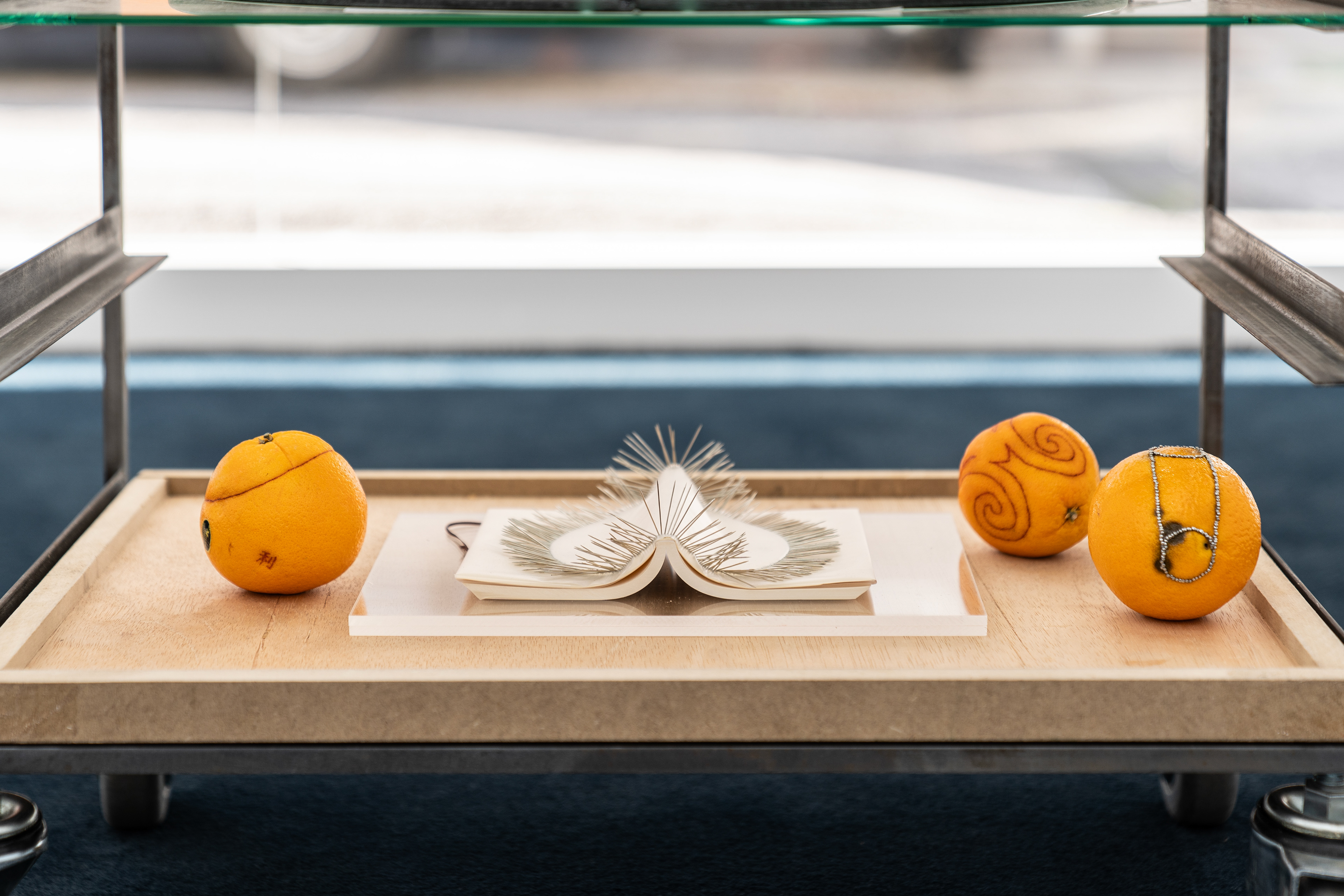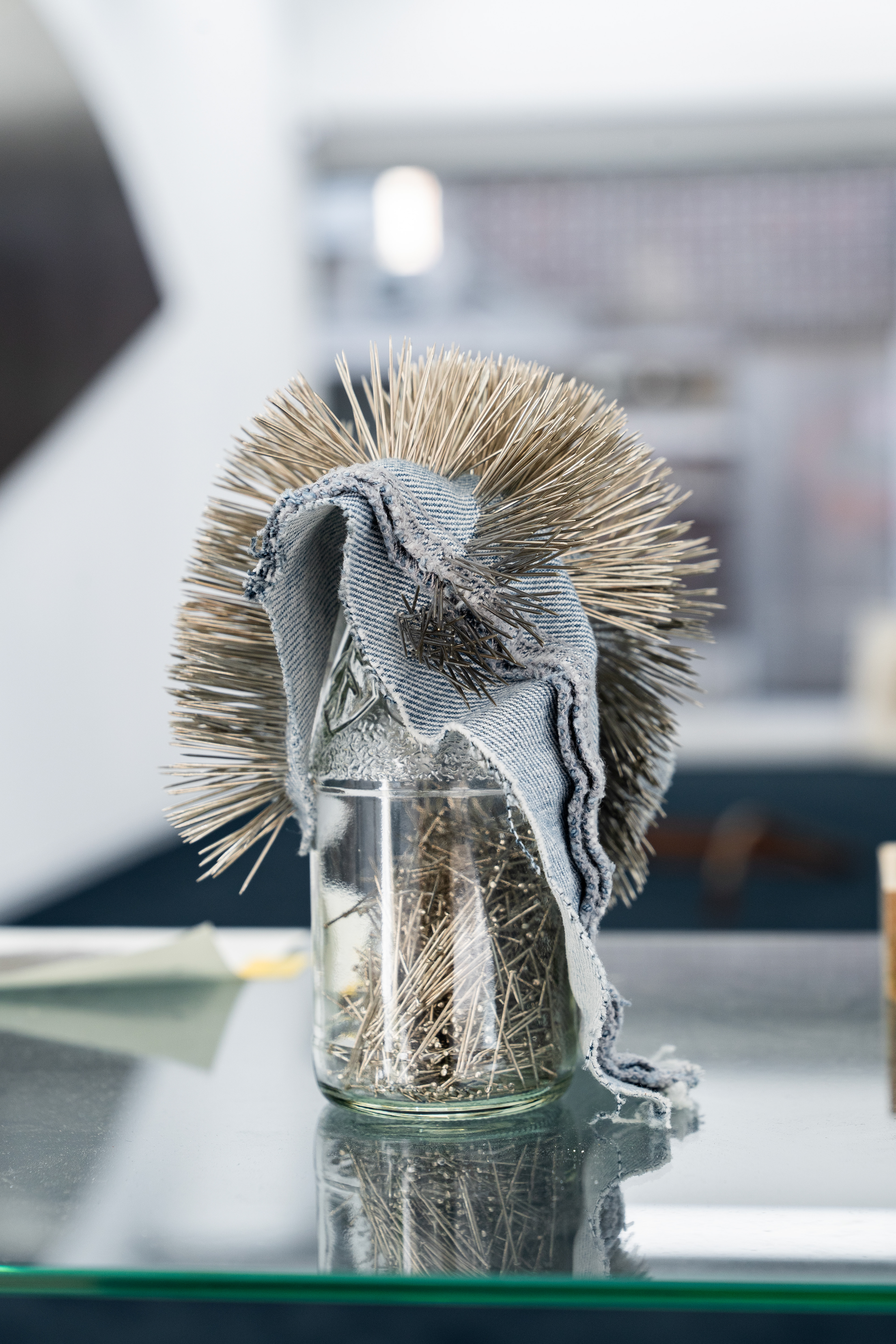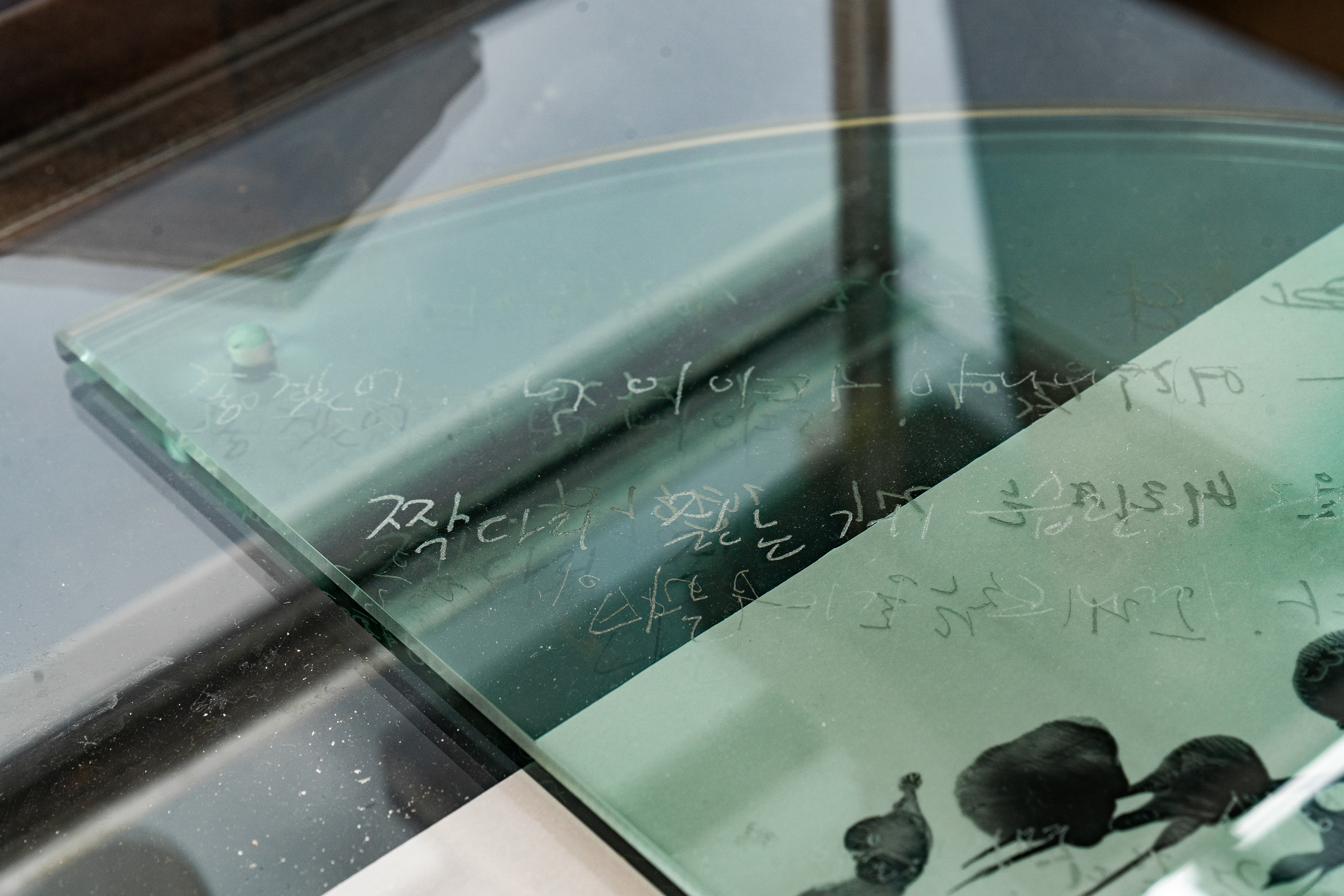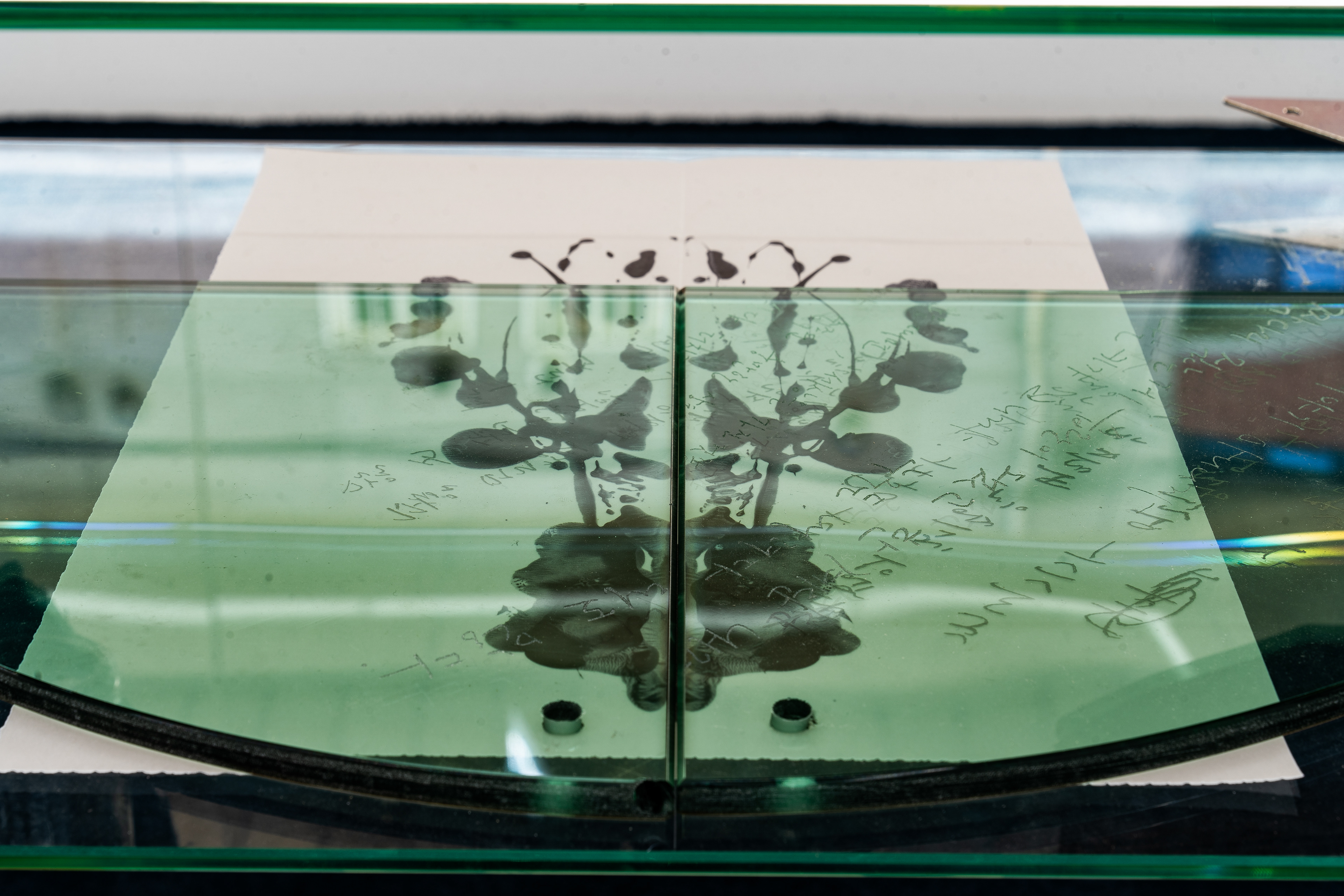 To flee from the impulse to constantly check his reflection in a dark window or the controlling desire to persistently extract and verify the origin of a phenomenon, she engages in performative tasks, such as densely filling a sheet of paper with ballpoint pen marks or meticulously piercing it with pushpins.