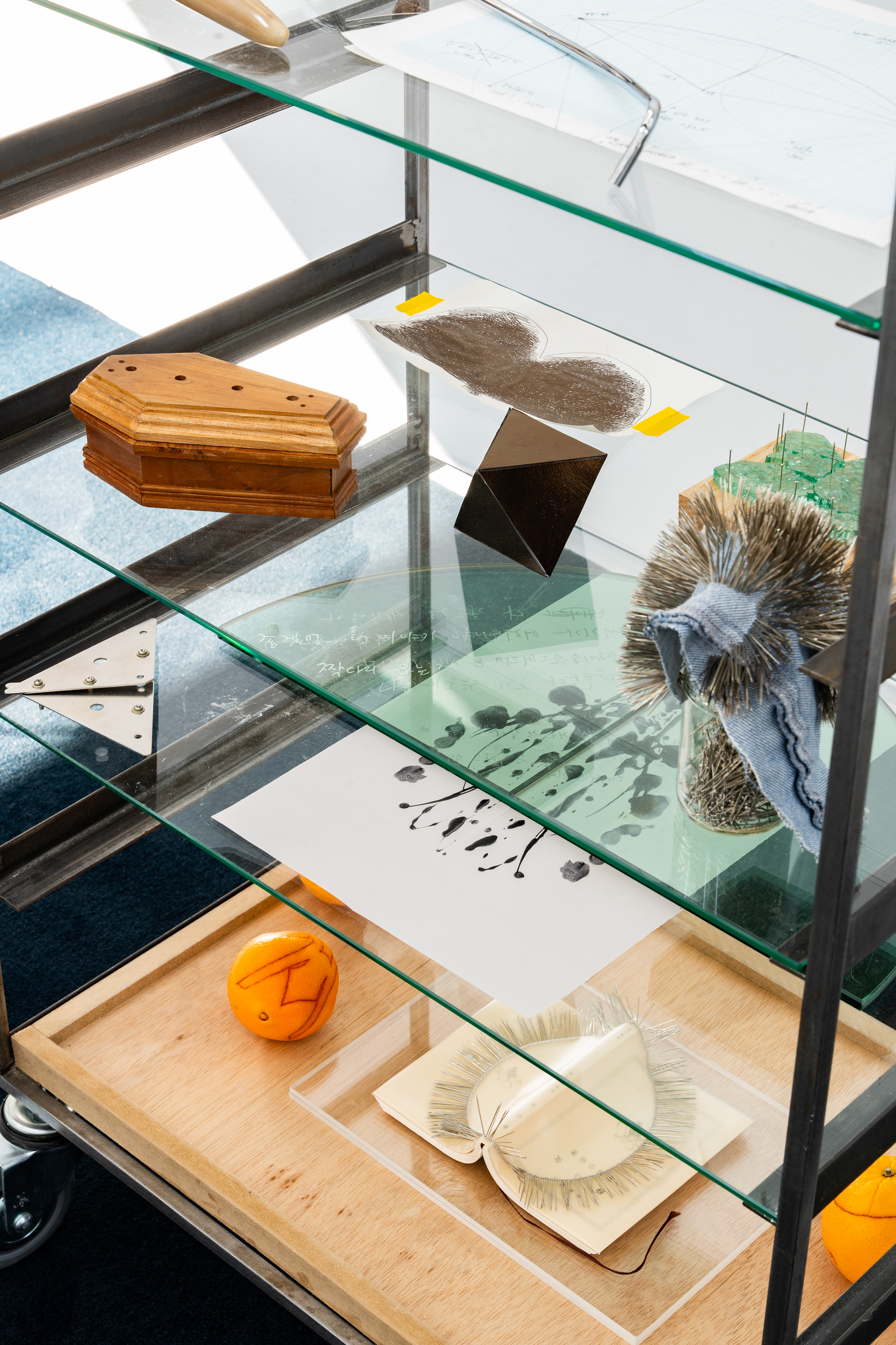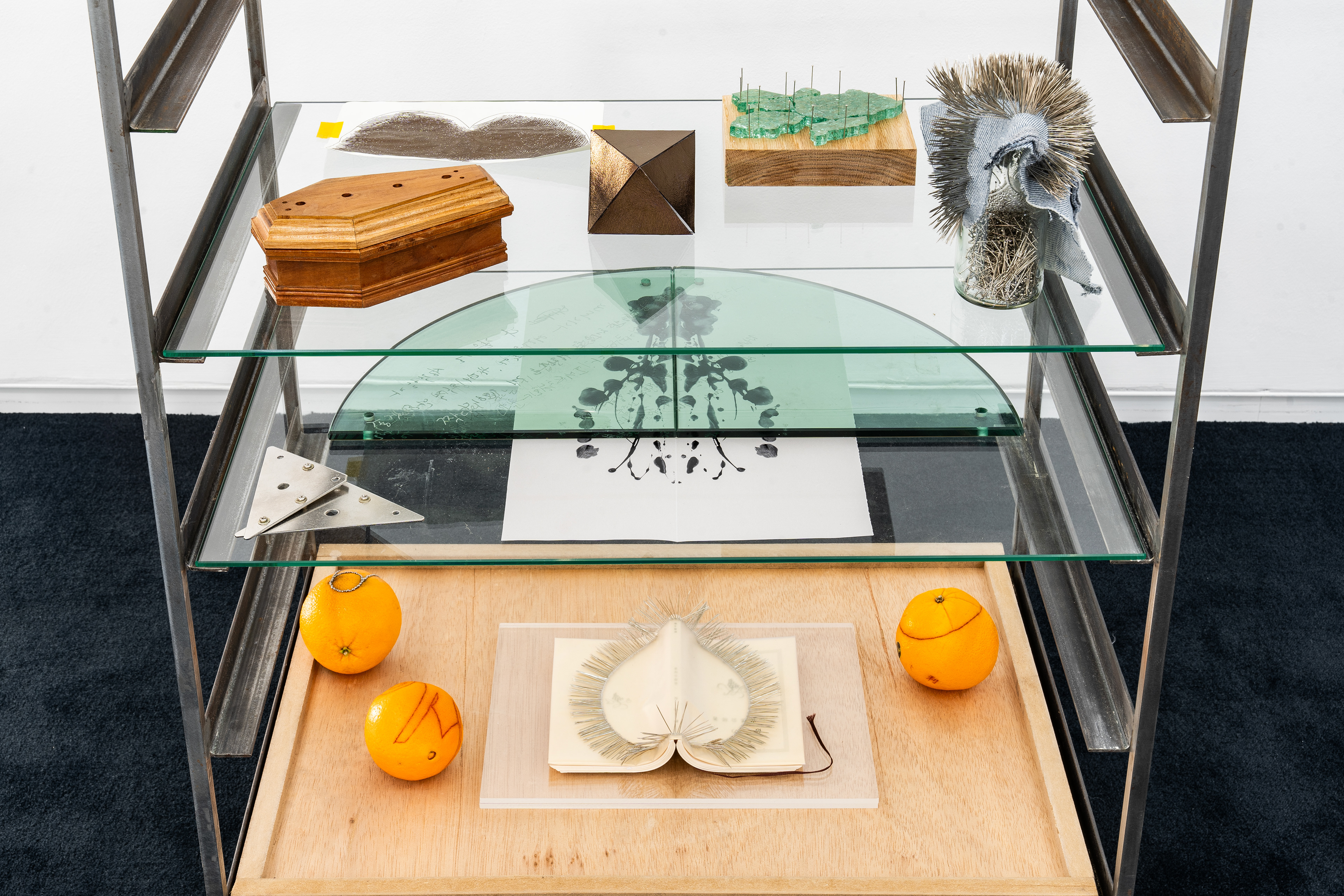 The exhibition was presented in the form of an archive, showcasing works that encapsulate personal anecdotes and narratives.