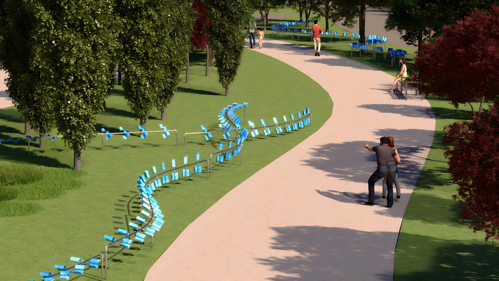 Pedestrians can explore the park by walking along the forked trails that divide and merge numerously.